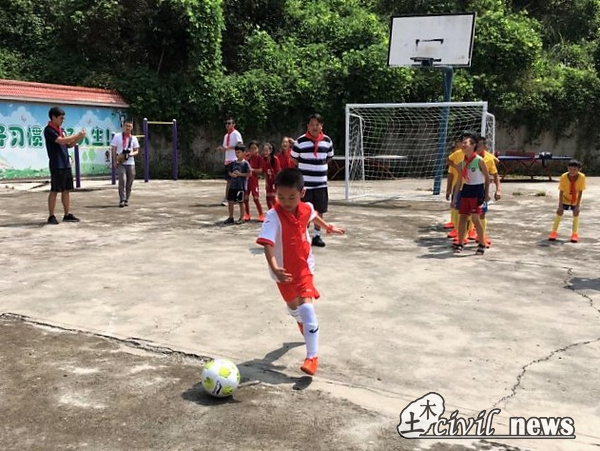 在开幕仪式结束后,老男孩足球俱乐部的老师组织孩子们进行了足球第一课的教学,简单的训练让孩子们兴奋不已,全然不顾骄阳似火,在操场上奔跑跳跃。