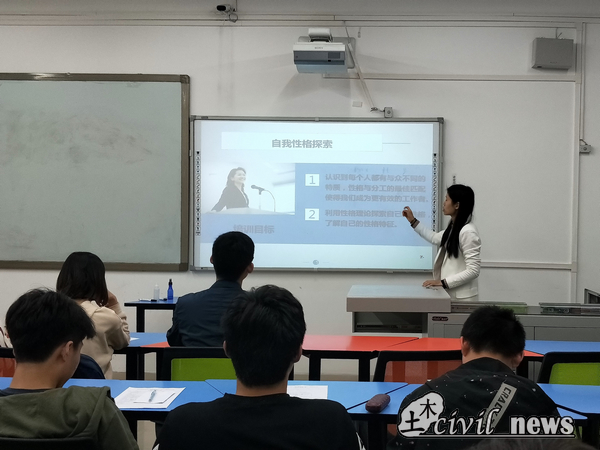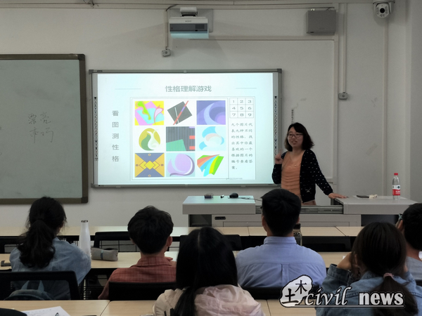 课堂刚刚开始,刘萍老师带领大家做了一套MBTI职业性格测试题。做完测试题后,刘萍老师用热播电视剧《欢乐颂》的五名角色的性格来作为本次课程的开头,刘萍老师结合了五名角色与同学们刚刚测试的MBTI测试题的结果来向大家说明每个人的性格的多样性。还给大家留了一道思考题“什么是性格”,同学们陷入了深思,之后刘萍老师用细致的分类给同学们认真讲述了刚刚的思考题与性格的影响因素。