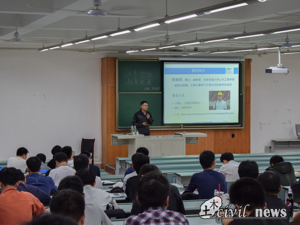 4月26日晚7点,地下工程系副教授蒋雅君于X4350开展了土木行业趋势发展讲座。蒋雅君教授就土木行业的总体发展趋势及土木工程本科学生读研的相关问题,为同学们展开具体说明,并为同学们答疑解惑。