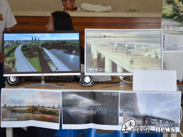 在各组作品中,不乏精彩之作。其中,《东湖之滨》,新颖独特,“府南栖净土,浮桥引津渡。向晚适溪憩,归欤涉东湖”,契合成都人民道法自然的价值观以“和谐”出发,将两条不同的桥梁通道合二为一;《安堋桥》,于都江堰之边,江堰古亦称安堰,堰亦称为堋,以旋转方架包裹桥身,尽显古韵;《天府弦韵》,以音乐为主题,以人为本,筑梦新区,将梁桥与斜拉桥组合,独具新意。