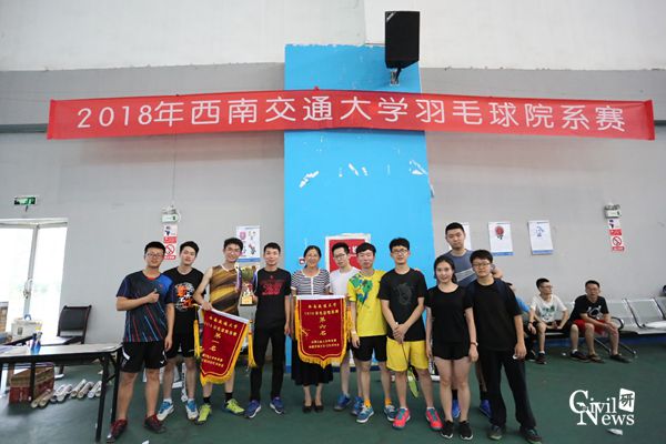 比赛结束,董琼老师为各获奖队伍颁发锦旗和奖杯并合影留念,整个羽毛球院系赛在轻松欢快的气氛中圆满落幕。羽毛球院系赛的开展,加强交大各学院羽毛球爱好者之间的联系,土木羽毛球代表队,也在院系赛上展现出土木的精神,百年土木,中流砥柱,期待你们在明年的院系赛中取得好成绩!