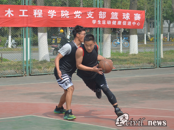 这3场比赛中,以第八党支部与第十党支部之间的比赛最为激烈。比赛一开始双方球员你来我往,攻守有度,第八党支部在这最开始的攻防战里,以7:4领先,但第十党支部不甘落后马上全力反攻,双方比分僵持在11:10。接着,第八党支部0号球员又以两罚两中为所在队伍打开了局势,在一波猛烈的进攻后第八党支部以17:10结束了上半场。
