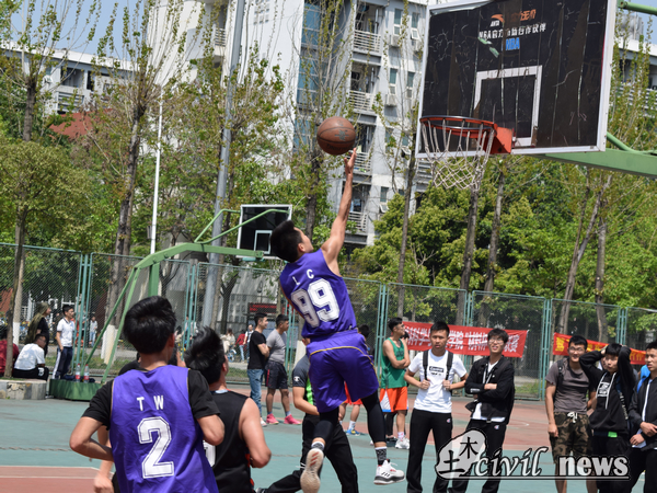随后,第16党支部9号黄宇鹏利用第9党支部的一个失误,抢断球后快速下切,一个上篮假动作将球分给了篮下的5号蔡高智,5号轻松地一记打板获取两分,赢得了场下的一阵欢呼。而这两分也使得第16党支部再一次以1分的微弱优势反超比分。