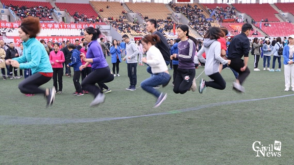 混合跳长绳比赛合影
