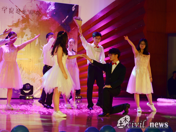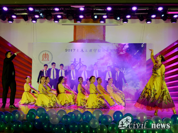 翩翩舞步中,踏出的是土木学子的青春火花。第一个节目是由新闻中心及ASCE协会带来的歌舞剧——《Summer Night》,活泼愉悦的歌声中,舞者们面含春风,尽情享受着台上的每一秒钟,她们的活力感染了台下的每一个观众。