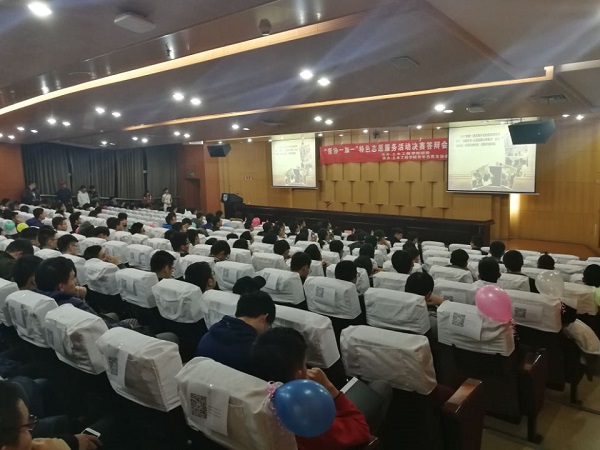 晚六点半,随着主持人走上台,我们的决赛答辩会正式开始。按照之前抽签决定的顺序,十个团支部依次上台进行PPT答辩和表演。答辩人员清晰并且有条理向大家介绍了自己团支部志愿活动的主题、过程、结果等方面的内容,让大家对他们团支部的志愿内容有了全面的认识;助场表演形式多样,有独唱合唱、朗诵情景剧等等,不仅加强了对志愿服务活动的诠释,也给现场带来了不少的欢笑和深刻的思考。有点遗憾的是其中两个团支部因为课程冲突不能来到现场,但是提前录制的视频却展示了他们独特的风采和对志愿服务活动的用心。