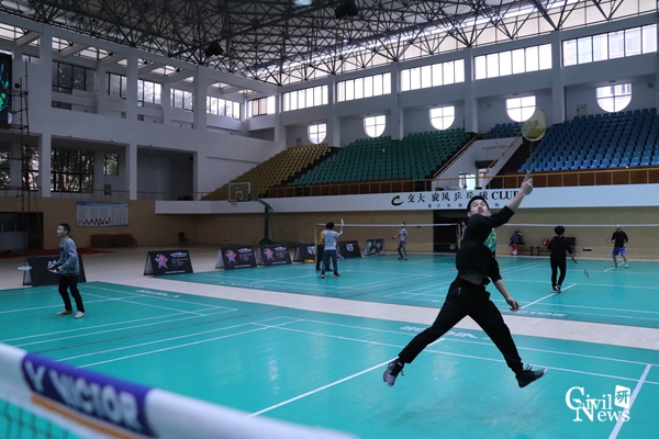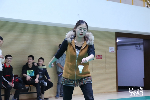 刚开始团队选手间还有些不适应,但随着比赛的激烈进行,大家慢慢的就有了默契,比赛进入白热化阶段,比分更是一直处于胶着状态,双方选手打的难分难舍,赢得了场下观众的阵阵喝彩。赛场上换了轻装的同学们,变成了活力四射的运动员,尽显风采,将高远球、扣杀、劈杀、吊球等各路球技展现的是淋漓尽致。