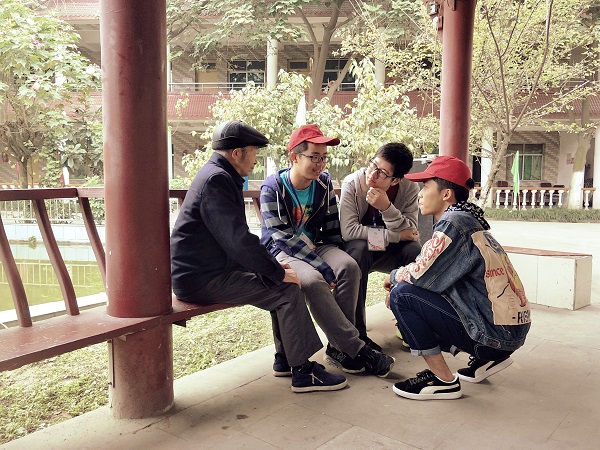28日两点半左右志愿者们抵达公寓门口,首先映入眼帘的是“人间百善孝为先,九九重阳倡和谐”的条幅。静谧的院子,时而几片落叶飘起。亭子里,老人们静静地坐着,志愿者们来到老人们小憩的亭榭,向他们问好,然后三两分组开始与他们话桑麻,志愿者们的到来仿佛为寂静的院子带来了热闹。老人们都非常的和蔼,也许是长久没人陪着聊家常,他们大都激动得有说不完的话想倾诉给志愿者们听。