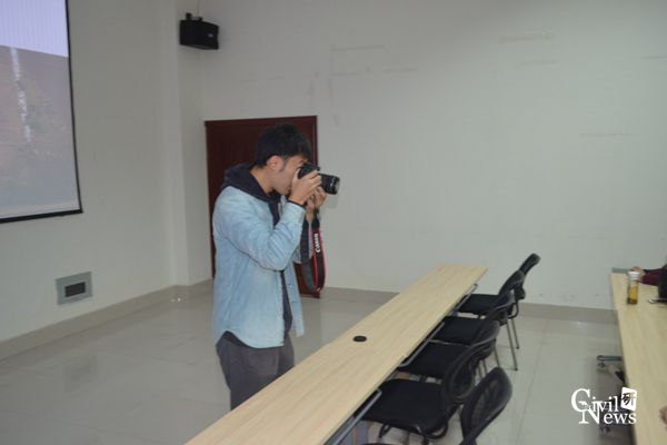 王泓颖同学首先给大家介绍了光圈和快门的定义及作用,然后是两者如何搭配起来使用,接着讲了如何准确地进行曝光和对焦,最后还讲了如何控制景深等。现场,王泓颖同学还拿着单反照相机跟台下各位摄影记者进行深入讲解与交流,大家纷纷提出问题,王泓颖同学倾囊相授,场面十分热烈。