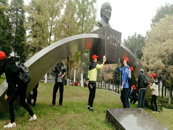2017年11月5日星期日,土木青协的志愿者们前往同林同炎先生雕像前,进行雕像清理活动。尽管这个时节已经能触摸到秋天的尾巴,但是志愿者们的爱心温暖如初。