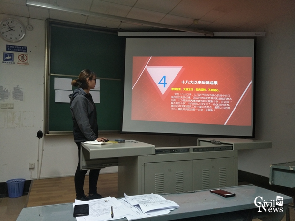 接下来,同学们在该班宣传委员于杰的带领下,进行了就教育及反腐败等问题的现状进行汇报。多名党员结合国家现有政策以及自身亲身经历发表各人观点并与班级同学进行热切讨论。