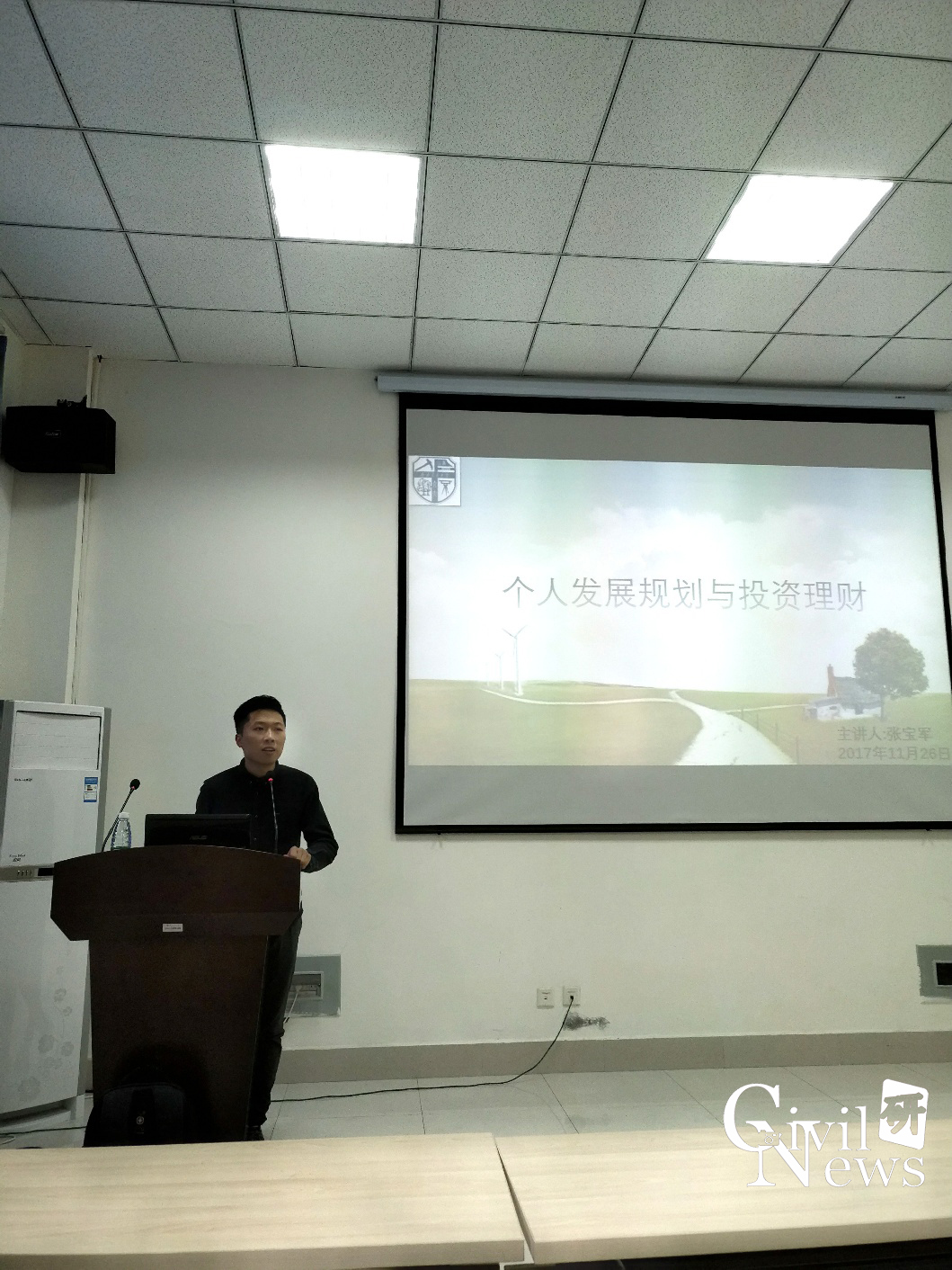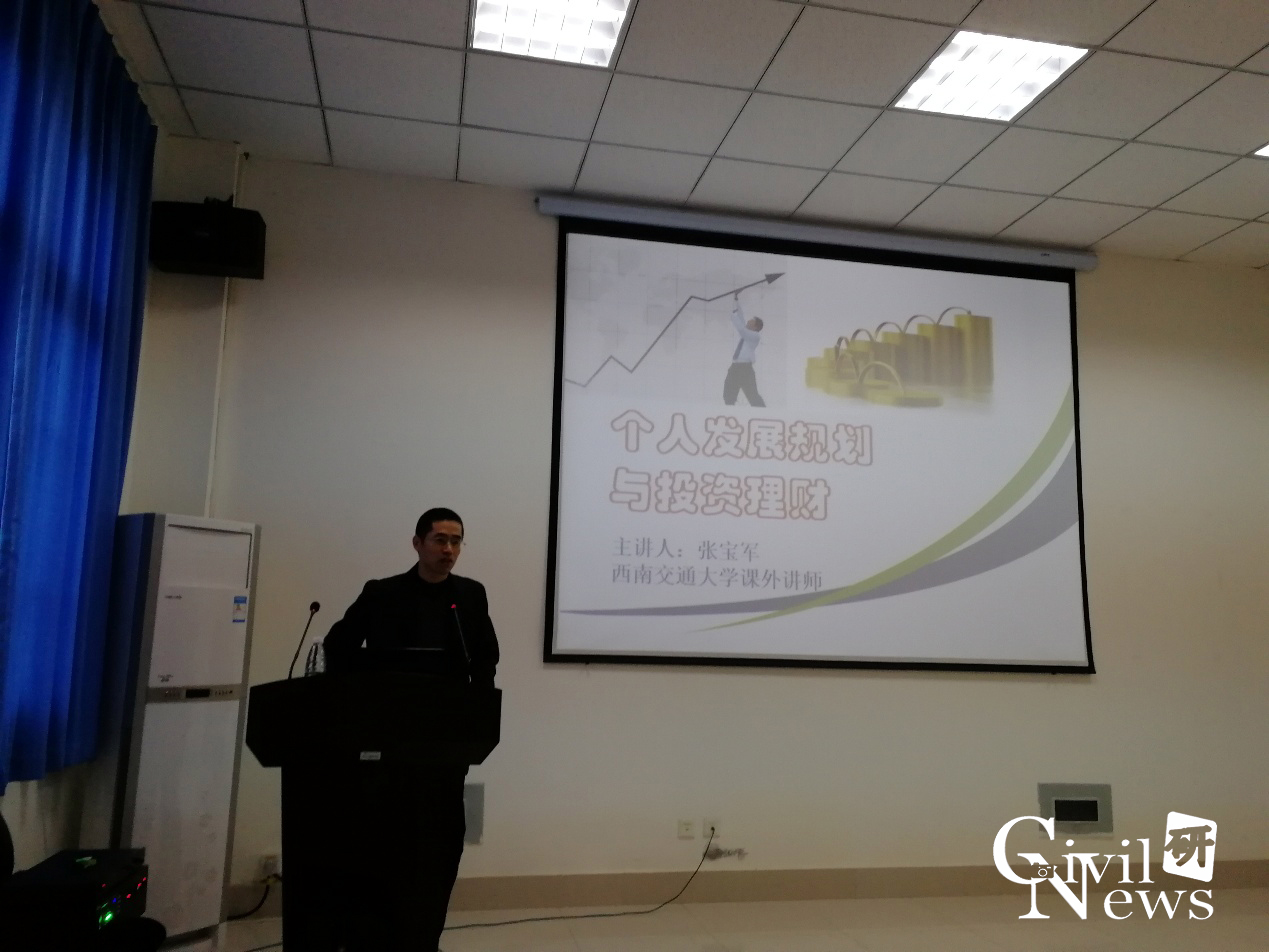 2017年11月26日,研究生2017级专硕岩土工程一班在隧道楼101教室顺利举办《个人发展规划与投资理财》讲座。中国铁道科学研究院副研究员张宝军老师给17级岩土工程专业的研究生同学以及另一些自愿到场的研究生、本科生同学作了一场精彩的演讲。