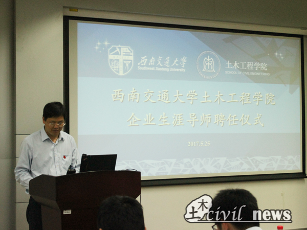 本次仪式分为聘任仪式主体和导师见面交流会两部分。下午2点半,在李锦红副书记的主持下,聘任仪式正式开始。李书记首先介绍了土木学院企业生涯导师项目的背景并公布了生涯导师名单,并介绍了出席领导及企业生涯导师。