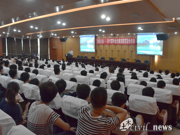 6月8日下午3点,由学生工作部主办、诸侯快讯ok1133.com大学生学业与发展指导中心承办的 “清风行动”第三部分——2017届毕业生廉洁专题讲座于图书馆2号报告厅如期召开。此次讲座由纪委葛永明副书记担任主讲人,邀请嘉宾有学工部副部长宋刚、土木学院团委书记刘萍以及各学院老师和同学们。