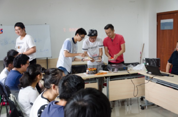 由于在导师会的当天恰逢班上一位同学的生日,导师自费给这位同学买了蛋糕,并联合全班同学一起为他庆祝了生日,并演唱生日歌。全场与会人员都品尝了蛋糕。一块蛋糕或许不大,但却拉近了全班同学与就业导师之间的距离。