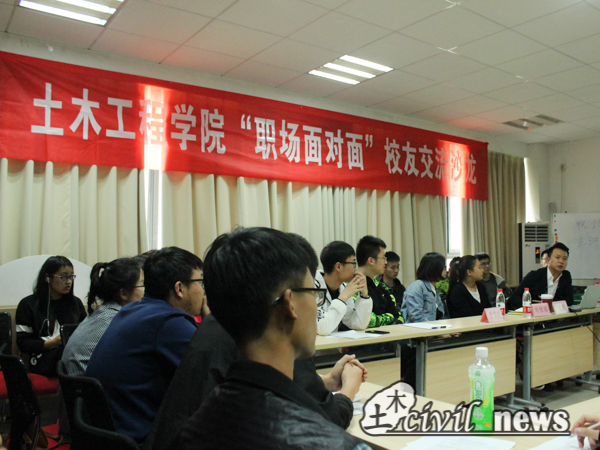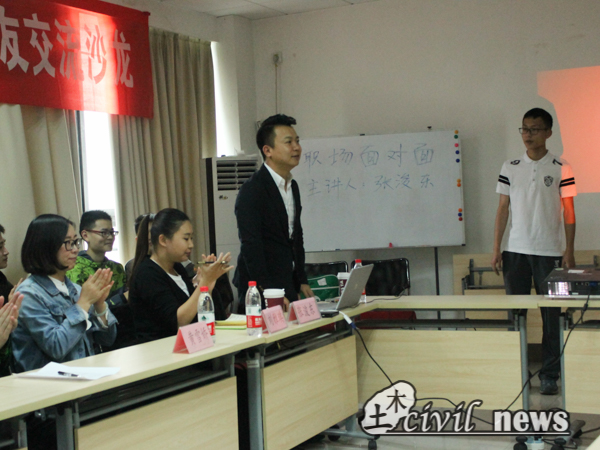 四月二十七日下午四时许,土木学院“职场面对面”校友交流沙龙在4229教室顺利举行。本次主讲嘉宾是土木学院2003级毕业生张浚东,本次沙龙由土木学院就业指导中心承办,并由黄雪娇老师主持。