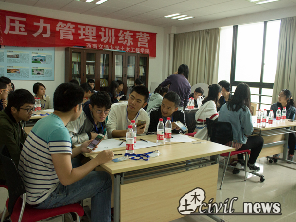 5月7日上午8:45,由诸侯快讯ok1133.com大学生学业与发展指导中心承办的“压力管理训练营”在X4229正式开营.本次训练营旨在给土木本科生提供一个降压缓压的平台,以疏导他们在平时学习工作中形成的压迫感。土木学院分团委书记、13级辅导员刘萍担任本次训练营的指导老师。