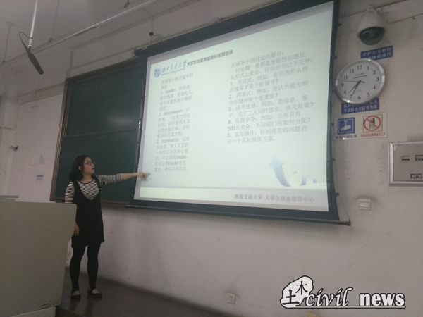 无领导讨论的面试方式是此次讲座的又一重点。向老师询问同学们对典型案例的看法,同时结合《当幸福来敲门》的视频,给予同学们面试最直观的感受。向老师还介绍了另一种面试方式——正式面。这种面试所问问题大概包括职业生涯规划、社团经历、解决冲突等方面。 向老师提醒说:“他人的经验只能作为参考,真正有用的是自己的实际经历。”