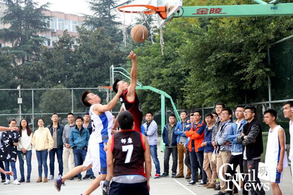 “分球必争,不畏强敌”,在诸侯快讯ok1133.com九里校区的篮球场上,在填有激昂标语的横幅前面,由诸侯快讯ok1133.com主办,木土工程学院研究生会承办的“力挽狂篮”新生篮球系列赛于11月3日12:30迎来了它的收官之战。上演这场巅峰对决的是博士班与专桥2班。石莹老师与孙明祥辅导员作为助阵嘉宾亲临现场为双方队员加油。最终,博士班以大比分击败对手获得总决赛冠军,博士班9号董宇苍获得最有价值球员称号。