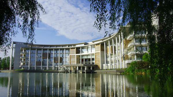 《容》作者:余宽原 作品说明:上善若水任方圆。临湖伴柳,天蓝相映,图书馆总是得天独厚地占据一方福地,但它亦用其宽广的胸襟,包容着清风明月、阳光雨露,包容着来自五湖四海的喜怒哀乐。