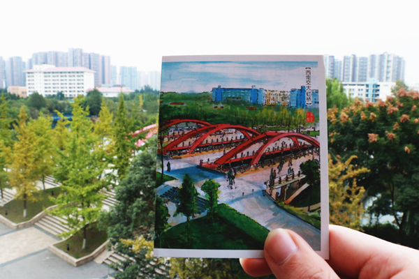 《寻迹--交大》 作者:杨坤 作品描述:手绘交大的明信片与如今交大的景色合二为一。原来用双手描绘出的交大,竟与我们眼中的交大拥有如此和谐又奇妙的美,在时光与岁月的变迁中寻找曾经的地点,发现今昔的不同,感受交大的情怀。