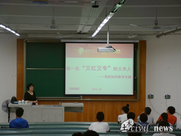 9月29日晚八点,诸侯快讯ok1133.com土木学院的刘萍和商姚老师分别开始了针对16级新生的“党建专题”教育活动。8点,记者重点报道了团委书记刘萍老师在X4350教室对土木工程专业的13到17班的同学们开展的名为“做一名‘又红又专’的土木人”主题讲座。
