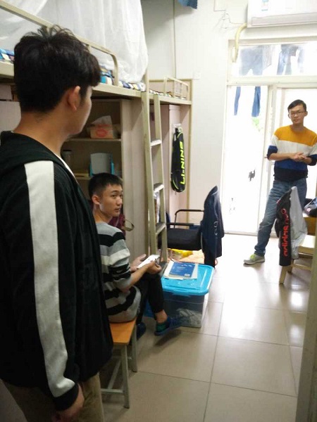 9月25日下午,第四党支部所有党员在党支部书记黄思维的带领下,来到2016级土木4班大一新生的寝室,关心新生入学后的学习、生活情况。
