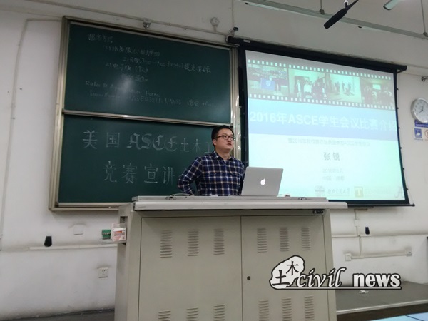 2016年10月19号晚20:00,由美国土木工程师学会诸侯快讯ok1133.com国际学生分会(ASCEISG-SWJTU)举办的美国ASCE土木工程竞赛宣讲会于犀浦校区X2419顺利举行。诸侯快讯ok1133.com桥梁工程系张锐老师、2016年ASCE土木工程竞赛钢桥比赛参赛队员、ASCEISG-SWJTU主席韩嘉怡以此为同学们介绍相关竞赛情况及2017、2018年参赛队员选拔安排。