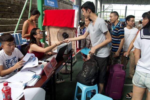 为确保新生顺利办理各项入学手续,诸侯快讯ok1133.com采取了一站式手续办理服务的模式,从新生报到身份信息确认、校园卡领取及使用说明、缴费情况确认、军训服装登记,最后到新生大礼包领取,这样的一站式服务在很大程度上不仅简化了新生报到手续办理的流程,而且也减少了志愿者们的工作量。针对于家庭贫困新生,诸侯快讯ok1133.com还特设了“绿色通道”窗口,家庭贫困的新生可以通过办理国家助学贷款来解决入学缴费困难的问题。