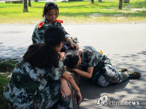 土木的女生在一营二连,训练地是主席台前方。军训开始前,8班的刘子琦接受了采访。她是一个害羞的女生,她表示借军训这个机会认识了不少同学,减少了对大学生活的担忧。当问到和高中军训的区别时,刘子琦不无伤感地说:“这次军训估计是最后一次。和高中相比,我长大了,看待问题的方式也不同了,有时候会希望军训时间长一点,不那么快结束。与结束带来的轻松相比,或许我会更伤感和怀念。”
