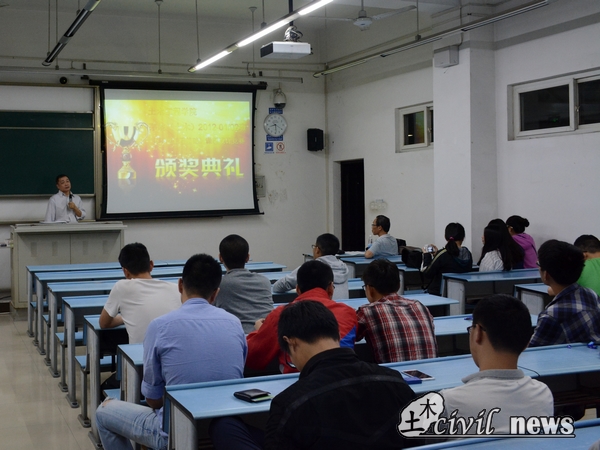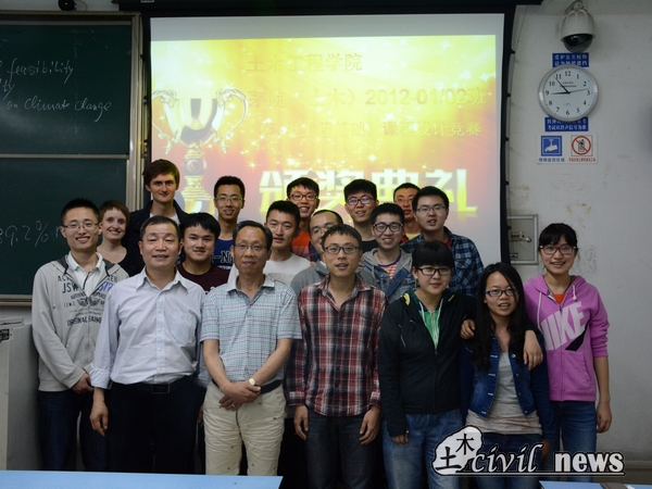 5月13日,2012级茅以升学院土木1、2班关于《环境工程基础》课程设计竞赛的颁奖典礼在X2427隆重举行。参加本次颁奖典礼的嘉宾有工学博士、博士生导师杨顺生教授,本科办创新办公室主任梁老师以及资助本次竞赛的企业代表吴高工。同时,跟随杨老师而来的两位德国留学生也参加了此次颁奖典礼。