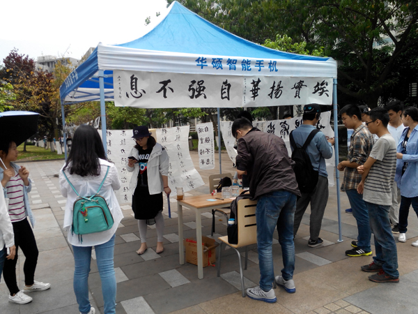 展览现场吸引了各色过往行人的眼球:有白发苍苍的返校校友,也有在校本科生和研究生,他们在这一幅幅书法作品面前有的指认念诵,有的单指书空,更不乏低声叫好者。活动现场还安排了讲解人员进行讲解,重点介绍展览活动的目的和意义,旨在宣传交大的校训和精神,为交大120周年华诞献礼。