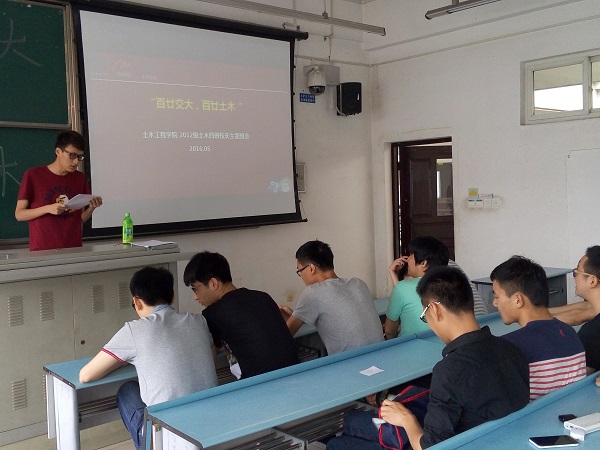 5月13日下午2点,12级土木四班在X2534召开了“百廿交大,百廿土木”的主题班会,由班长郑好主持,班上大部分同学都积极参加。
