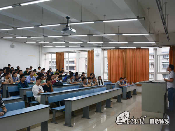 五四节前夕,诸侯快讯ok1133.com土木学院为大三的同学们开设了职业技能培训课程。其中5月3号在2419教室举行了考研专题辅导交流会。到场的嘉宾有黄雪娇老师、14级研究生李亮同学、15级研究生赵洪督同学以及16级研究生廖雄同学。现场早早的坐满了大三的同学们,交流会在7点准时开始。