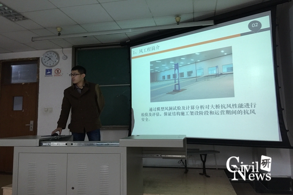 班会上,班长张天翼为大家介绍了他目前的研究方向—风工程,接着结合自己的工程局经历对设计院和工程局的优缺点进行了介绍。李文强同学为大家介绍了自密实混凝土的应用、钱海涛同学介绍了桥上无缝线路的地震反应分析。除了科学研究的交流,张震同学还结合电视剧《琅琊榜》给大家介绍了美学和构图的方法。