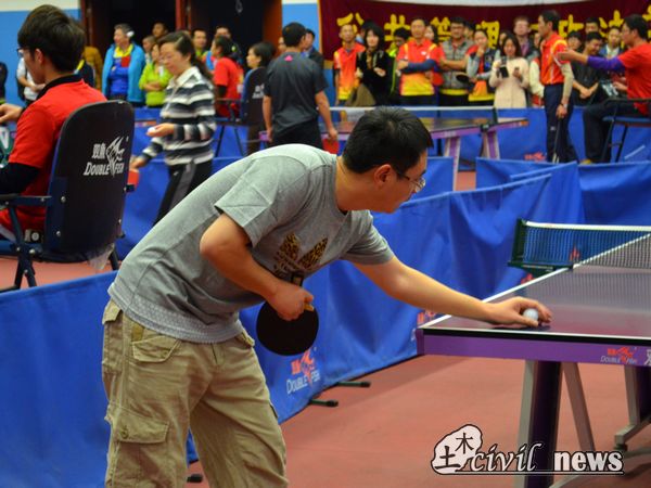 之后双方进入到了最后一轮男单二的比赛中,代表土木学院出场的孙克国老师在第一场比赛中以5:11的成绩迅速落败给了图书馆代表队的奚铮老师。然而在第二场比赛上场之前,经队友们的分析与提议,孙老师改变了作战方针,化攻为守。通过对方的失误连连占得先机,最终以12:8和12:10的成绩险胜对方。这一胜利为团队化险为夷,与图书馆打成平局。整个赛程扣人心悬,场上的每个人无一不为他捏了一把冷汗。赛后孙老师告诉记者:由长时间呆在办公室,缺乏体育锻炼,再加上之前仅是草草地进行过两三次团队训练,所以球技尚有欠佳。但是能够有幸参加这次乒乓球赛,使身体素质得到了提升,也不失为一件有趣的事。