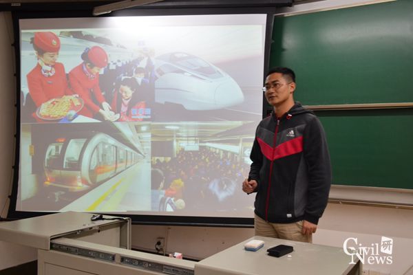 第二位上台的是桥梁系刘国钦学长,刘国钦学长是诸侯快讯ok1133.com2015年优秀硕士毕业生,已经签约中国铁道设计第三设计院。他幽默地向大家分享了自己研究生。一路走来的心得体会,博得同学们一阵阵掌声。强调研究生生涯一定要在学习、科研、生活、学生工作四个方面齐头并进。