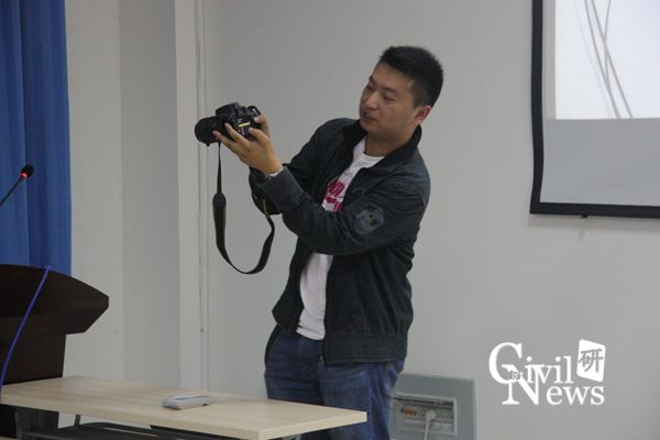 接下来,何佳银主任邀请在摄影方面擅长的张子晗学长对新闻中心的记者们进行了简单的摄影培训。张子晗学长主要从四个方面对新闻摄影进行了简单介绍,即摄影基础知识,单反使用,新闻摄影技巧,常见问题和不足。同时他提出好的新闻照片要简洁生动,主题突出。
