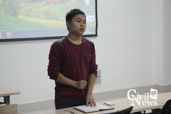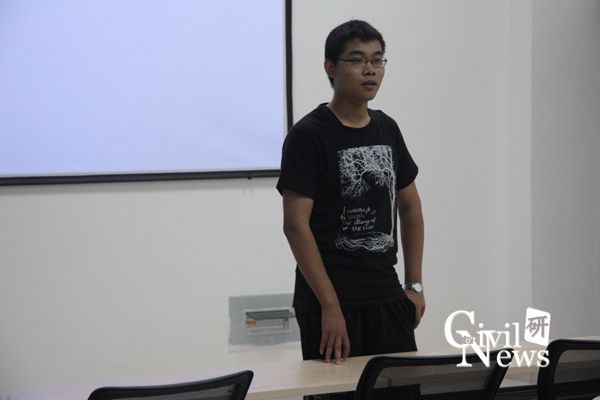 紧接着,新闻中心前主任朱玉龙学长上台发言。他针对刚才讨论中出现的问题,提出了补充意见和要求。同时,他提出要加强新闻中心组织内部的交流和了解。并鼓励同学们提出自己的想法,群策群力,促进新闻中心更好的发展。