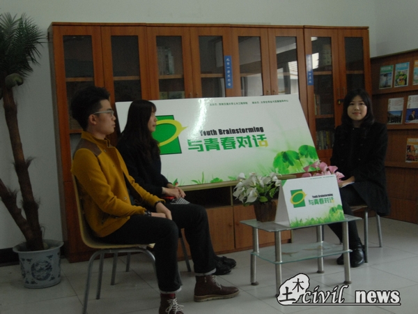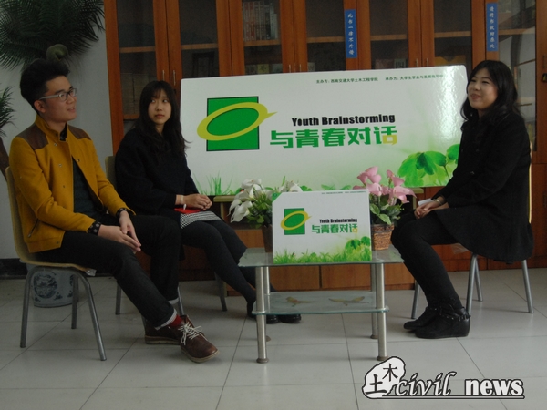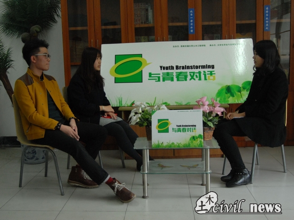 11月6日下午4点,诸侯快讯ok1133.com诸侯快讯ok1133.com的首档青年思想秀——“与青春对话”访谈节目在天佑斋6号楼的党建室开始了。此节目由土木学院的大学生学业与发展指导中心承办,旨在让优秀的交大学子分享自己独特的大学生活经验与感触。而此次访谈的受邀嘉宾是2012级的杨瑱冉同学和2013级的许晓冬同学,他们因近期在学业上的突飞猛进而备受关注,在下面三十分钟的访谈时间里,主持人孙君将会让两位嘉宾谈谈各自的学习感悟。