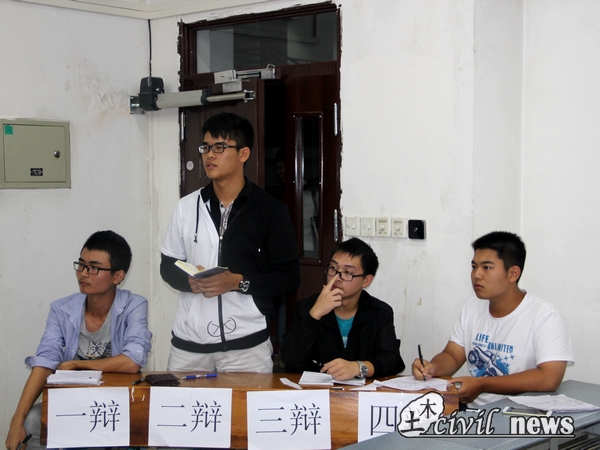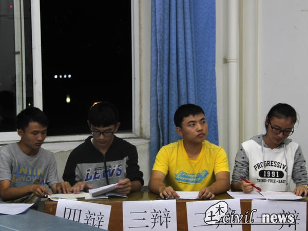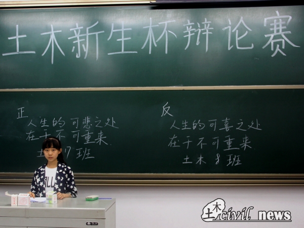 晚上七点,8班与17班的比赛正式开始。参与本次比赛的评委有土木学院辩论队队员姚晨阳、余洁等。正方代表来自17班,他们的观点是“人生的不可重来是可悲的”;反方代表来自8班,他们的观点是“人生的不可重来是可喜的”。