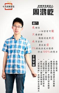 周鸿屹,男,1993年7月出生,中共党员。大学期间全面发展的同时,在科创方面取得较为突出的成绩。