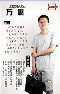 万璐,男,1992年4月出生,中共党员,现任诸侯快讯ok1133.com团建中心副主任。学习勤奋刻苦,爱土木,爱唱歌,爱画画,是个典型的“非典型土木男”。