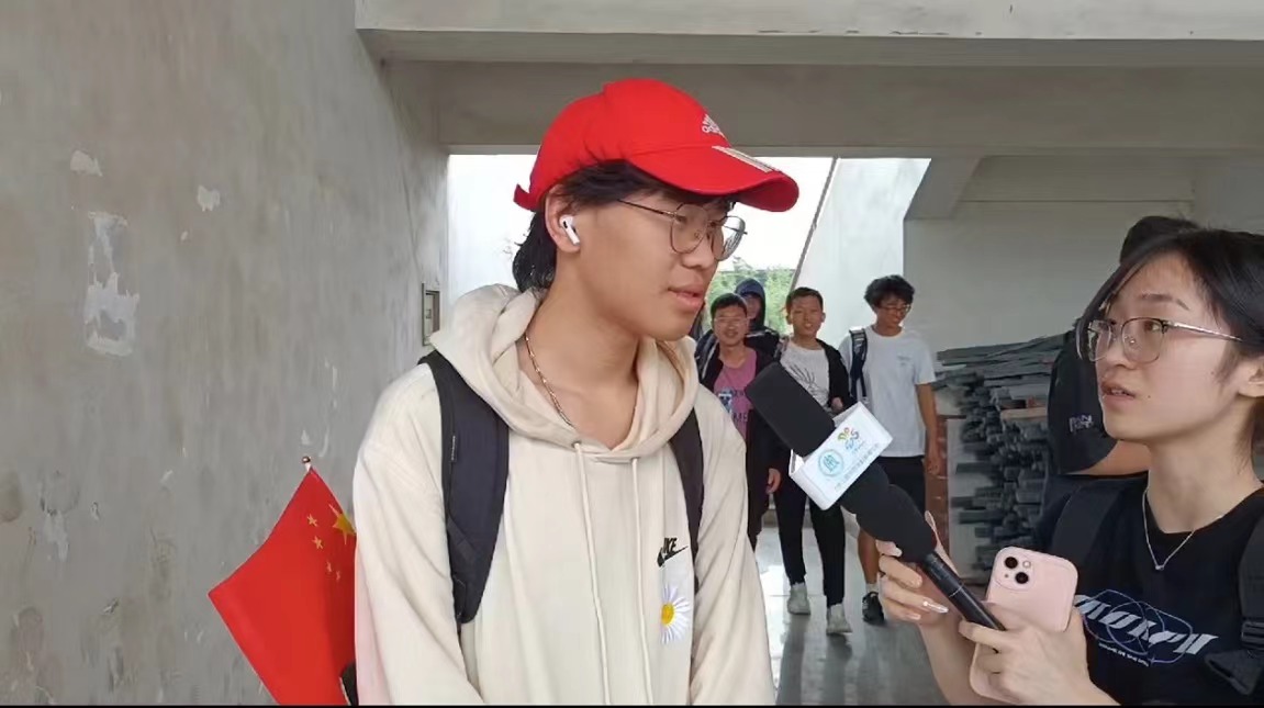 视线离开土木学院,记者发现了一名热情观众,来自2022级机械工程学院的蔡信豪同学。作为大一新生第一次参加大学运动会,运动会的规模之大与各方面的准备规划都让蔡信豪同学有全新体验。他在开幕式中真切感受到了交大“交通天下”的专业特色:“在开幕式结尾时出现的列头车让我印象深刻,代表了我们交大的一大特色与强项。”在观看完上午的比赛后,蔡信豪同学表示被运动员的满满活力感染,每一位运动员都在全力以赴展现自己,为运动员们的拼搏精神点赞。