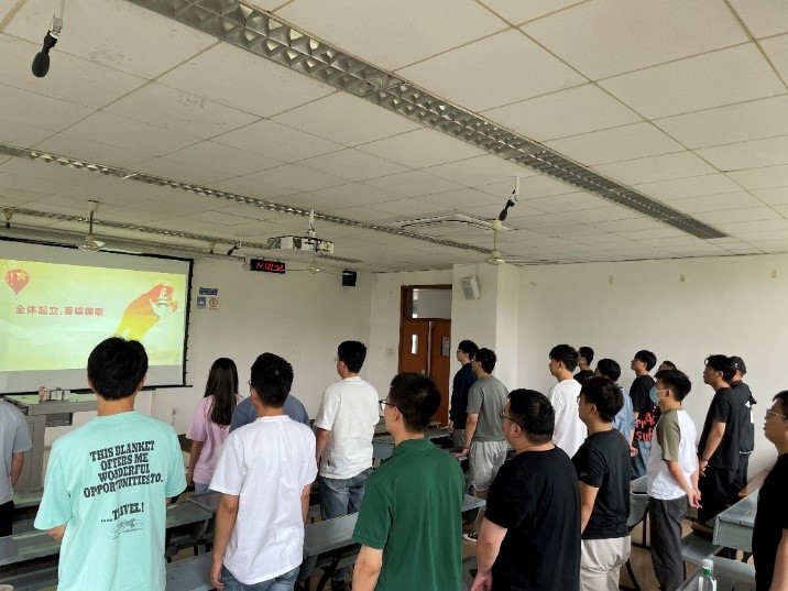 活动伊始,全体起立奏唱国歌。随后党支部宣传委员张童童向大家介绍伟大的抗美援朝精神。抗美援朝精神是为了祖国和民族的尊严而奋不顾身的爱国主义与精神,是英勇顽强、舍生忘死的革命英雄主义精神,是不畏艰难困苦、始终保持高昂士气的革命乐观主义精神,是为了完成祖国和人民赋予的使命、慷慨奉献自己一切的革命忠诚精神,也是为了人类和平与正义事业而奋斗的国际主义精神。