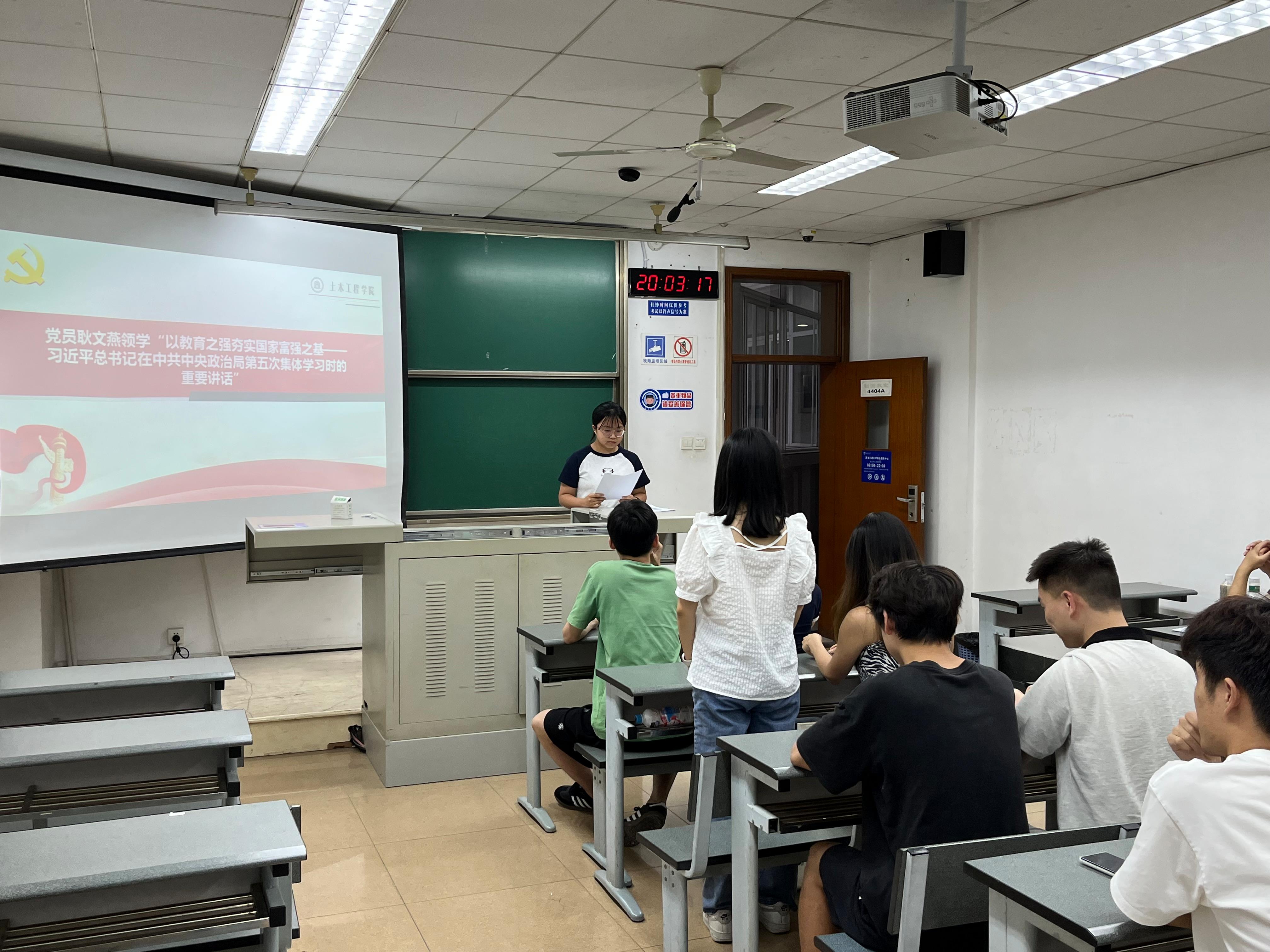 随后,党员耿文燕同志领学了“以教育之强夯实国家富强之基——习近平总书记在中共中央政治局第五次集体学习时的重要讲话”。重点阐述了习近平总书记在该次集体学习中对教育的重要性的强调,强调了教育对于国家富强的基础性作用。