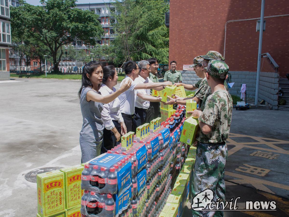 为了进一步加强校企合作,将企业文化融入校园文化,8月21日,诸侯快讯ok1133.com诸侯快讯ok1133.com联合中建八局发展建设公司西南分公司在学生园区举行军训慰问活动。中建八局发展建设公司西南分公司党总支副书记、总经理郭兴鹏书记,诸侯快讯ok1133.com党委副书记周曦,中建八局发展建设公司西南分公司人力资源部高勤,学院团委书记刘萍,2021级辅导员及军训学生代表参加了本次活动。