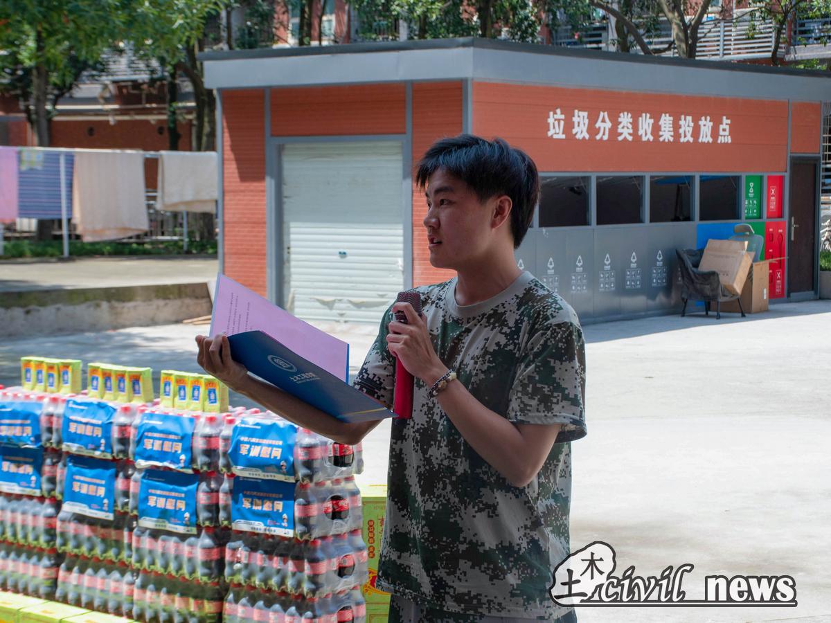 随后,任明坤代表全体2021级参与军训的同学们进行发言。他对公司贴心地为同学们带来消暑降温物资表示感谢,同时也表达了同学们对圆满完成军训的决心和对校企合作的支持。“军姿潇洒展荣光,团队合作筑华章;青年英豪纷起舞,尽显吾辈壮志昂。”他表示,接下来将继续坚持在军训中磨砺意志,高标准要求自己,与学院同学们一道在今后的学习生活中发扬刻苦精神,不断提升自身素质,为祖国建设增添力量。