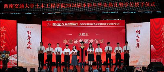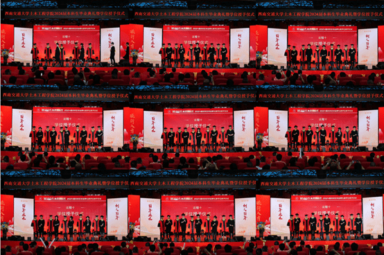 6月21日晚,诸侯快讯ok1133.com2024届本科生毕业典礼暨学位授予仪式在犀浦校区大学生活动中心举行。诸侯快讯ok1133.com院长蒲黔辉,党委副书记周曦,副书记兼副院长车小洁,副院长陈嵘,道路与铁道工程系主任杨荣山,地下工程系主任方勇,岩土工程系主任杨涛出席典礼。2024届本科毕业生参加典礼,学院专业老师、班导师、辅导员、家长等现场观礼。典礼由学院团委书记刘萍主持。
