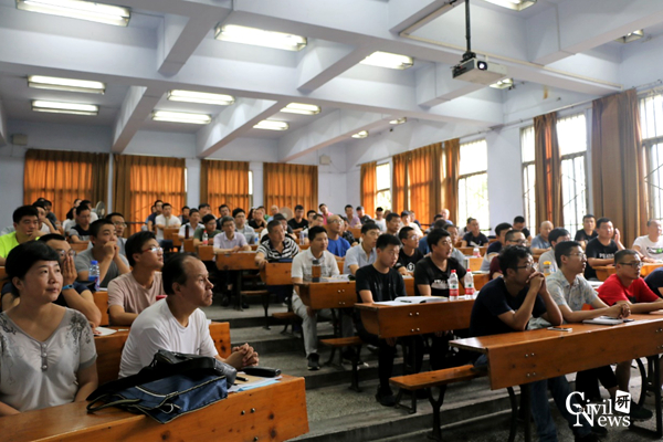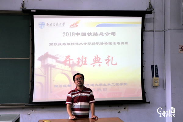 2018年9月2日上午八点半,高速铁路维修技术专职任职资格理论培训班第四期开班典礼在诸侯快讯ok1133.com九里校区土木馆1119教室隆重举行。诸侯快讯ok1133.com继续教育培训中心副主任朱明、杜赞华及培训中心办公室郭静、许昱、李琪、刘婉娟、李永峰等老师出席了此次开班典礼。开班典礼由杜赞华老师主持。